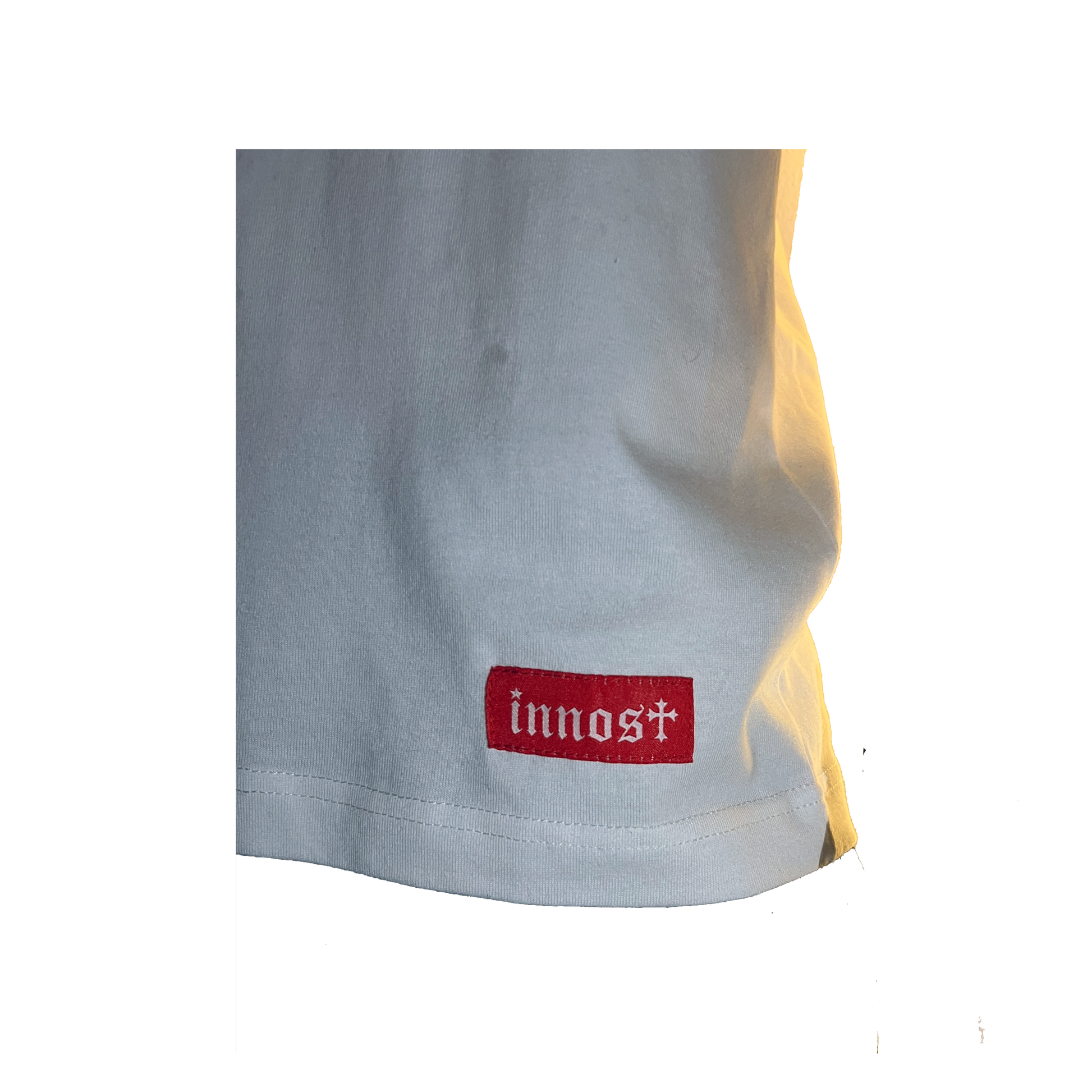 El diseño presenta una rosa en el centro rodeada de pétalos cayendo, creando una estética fuerte pero elegante. En el frente, lleva un detalle minimalista con el texto “crimson” y una etiqueta tejida en rojo con el logo de innost.